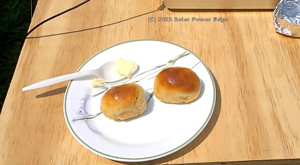 Is it possible to bake bread using an 18V Power Tool Battery? Recently, I set out to answer this question. In the back yard I set up a table and connected my mini solar electric PV2L oven to a Ryobi 18V power tool battery with alligator clips.