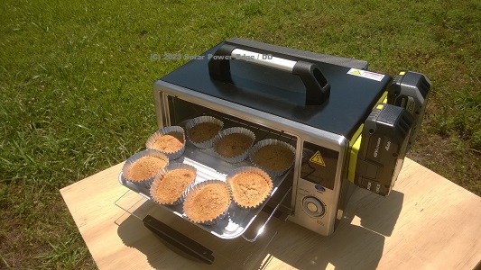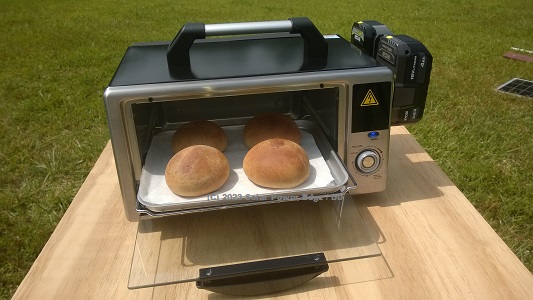 I have a lot of prototype ovens in my shop but have not been able to publicly demonstrate all of them. One prototype previously documented is a small portable electric oven prototype I built which can fit in a backpack. It operates off a single 18V power tool battery or a 100W solar panel – link here and here. Another idea whose time has come!