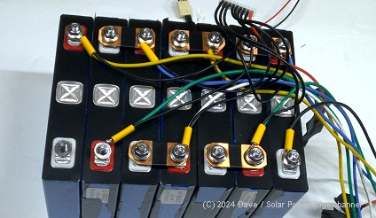 Below are pictures of the battery pack I am building and the bus bars. Trimming the corners with tin snips makes them look a little better and with care, they can be cut with a rounder shape. It’s all a balance of time spent vs. refinement and quality. A better option might be to grind the corners off or use a file, but that takes even more time.