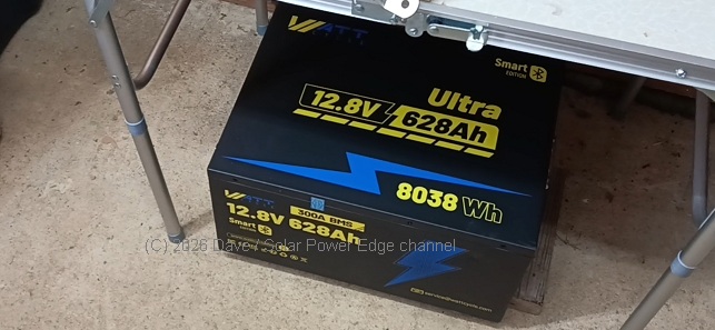Some months later, I finally received the WattCycle 628ah battery. To say it’s huge and heavy would not be an understatement. Quite an impressive piece of kit with it’s tough steel case and handles. Despite being very sick at the time, I managed to haul the battery out to my barn and ease it into position underneath a table.